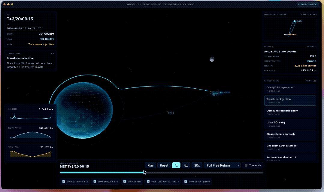 技术上要求用WebGL做3D渲染、用Vite搭项目,内容上要尽量接入ArtemisII任务的真实数据,把轨道、飞行路径、天体位置这些信息真实地表现出来。